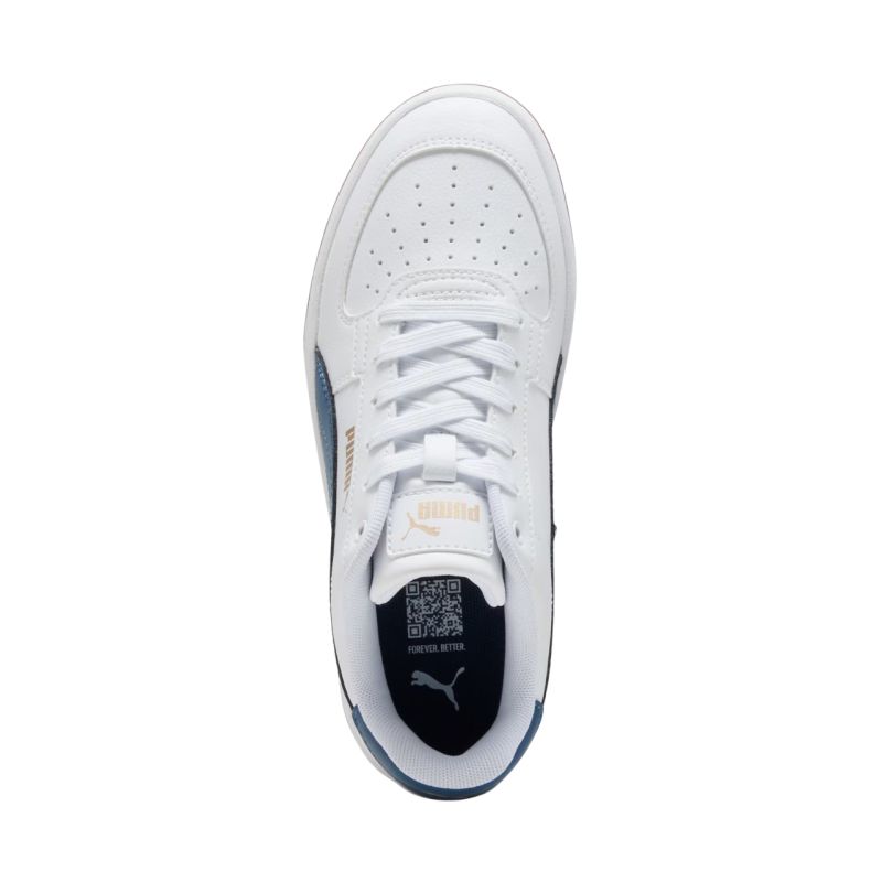Puma Caven 2.0 Kids' Shoes White and Blue 393837 57 Puma kids' shoes are a proven everyday shoe. Lightweight synthetic leather upper. Perforated eyelets at the forefoot. Classic lacing. Soft SoftFoam+ insole. Rubber outsole.