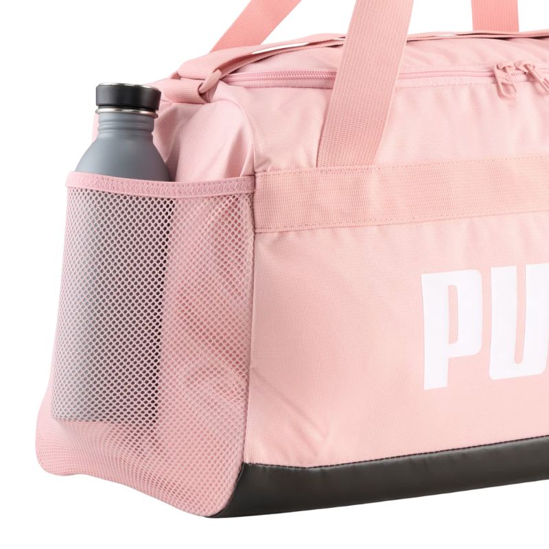 Puma Challenger S Bag Pink 91143 28 Whether you're looking to take your essentials with you on a quick trip or to your workout, this Puma bag is a great choice. Main compartment with a two-way zipper. Zippered side pocket for shoes. Side pockets: one open mesh pocket and one zippered. Made of durable polyester. Padded polyurethane bottom panel. Double webbed handles with a connector. Adjustable webbed shoulder strap with a soft padding. Additional side handle. Large logo on the front. Specifications: Dimensions: 51x28x25 cm Capacity: 35 l Material: 100% polyester
