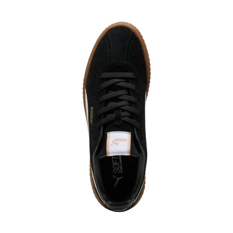 Puma Club Kayzer SD Women's Shoes Black 402606 01 Puma shoes provide all-day comfort. Suede leather upper with synthetic accents. Classic lacing. Textile lining. SoftFoam+ insole enhances comfort by absorbing shock. Low-profile design allows for unrestricted ankle movement. Rubber outsole.