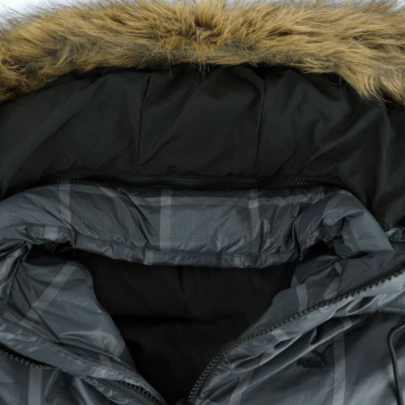 Puma Edition Down Men's Jacket Gray 555813 02 This Puma men's jacket is perfect for winter, protecting you from the cold. Filled with natural down and duck feathers, evenly distributed in horizontal panels. Standard fit. Two-way zipper. Detachable hood with adjustment. Zippered side pockets. Sleeves finished with elastic trim. Embroidered logo. Specifications: Main material: 100% nylon. Lining: 100% polyester. Filling: duck down/feather.