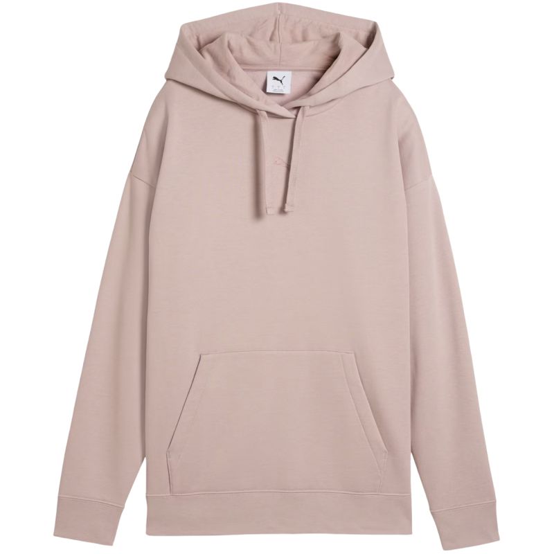 Puma ESS Centered Cat Logo Relaxed Hoodie Pink 692917 89 This Puma women's sweatshirt is perfect for everyday wear. It features a subtle logo on the chest. Cotton is the dominant material. Elastane is added. Softly padded interior. Relaxed fit. Fixed hood with drawstring adjustment. Roomy front pocket. Ribbed cuffs and hem. Main fabric: 97% cotton, 3% elastane. Hood lining: 100% cotton.