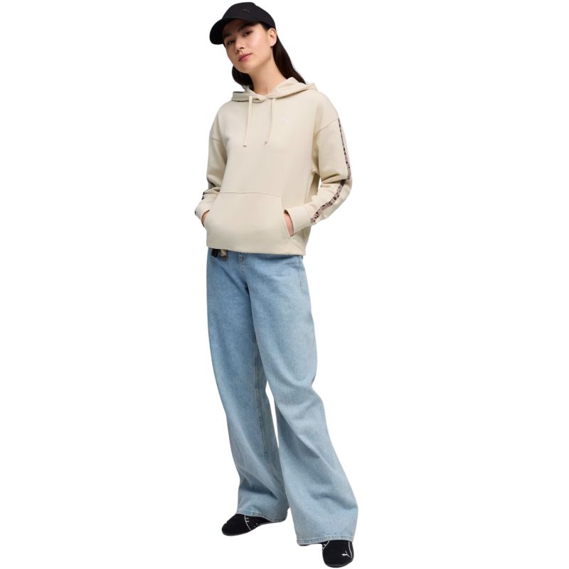 Puma ESS Graphic Animal Comfort Hoodie Beige 691822 87 Women's Puma sweatshirt is perfect for everyday wear. Small logo on the front. Loose fit. Ribbed cuffs and hem. Front pocket. Adjustable hood. Animal print stripes. Specifications: Main material: 68% cotton, 32% polyester. Ribbing: 97% cotton, 3% elastane. Hood lining: 100% cotton.