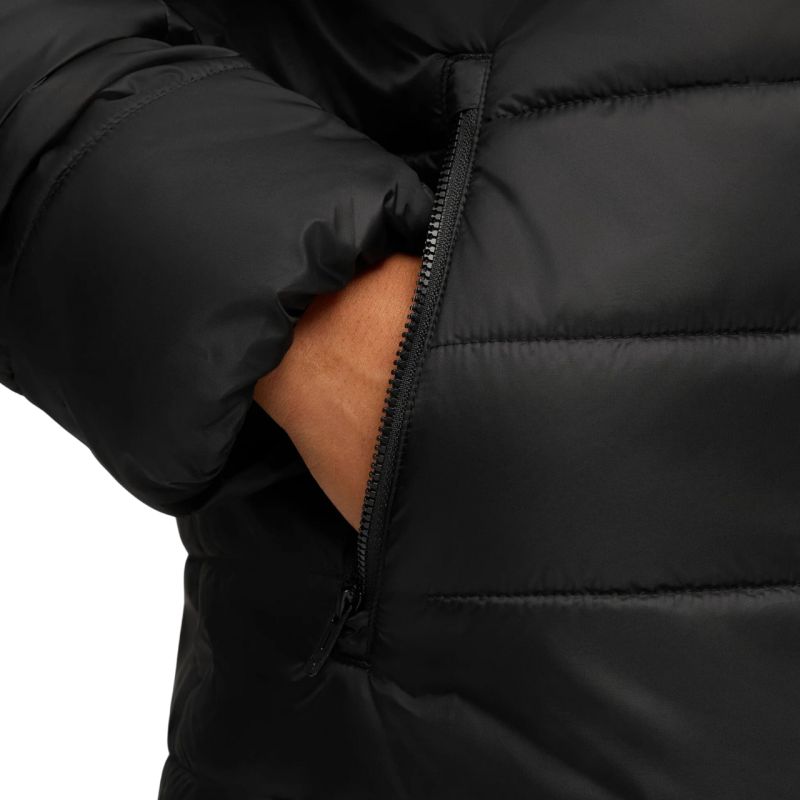 Puma ESS Hooded Padded Men's Jacket Black 685211 01 This Puma men's jacket will keep you warm on frosty days and enhance your sporty look. Synthetic down with WarmCell technology guarantees reliable protection against the cold and is exceptionally lightweight, allowing you to maintain complete freedom of movement. A water-repellent finish and RainCell system reduce moisture absorption. WindCell protects against the wind. Regular fit. Quilted, horizontal panels. Zippered side pockets. Straight, quilted design. Fixed hood. Jacket made from at least 90% recycled materials. Specifications: Material: 100% polyester. Filling: 100% polyester. Lining: 100% polyester.