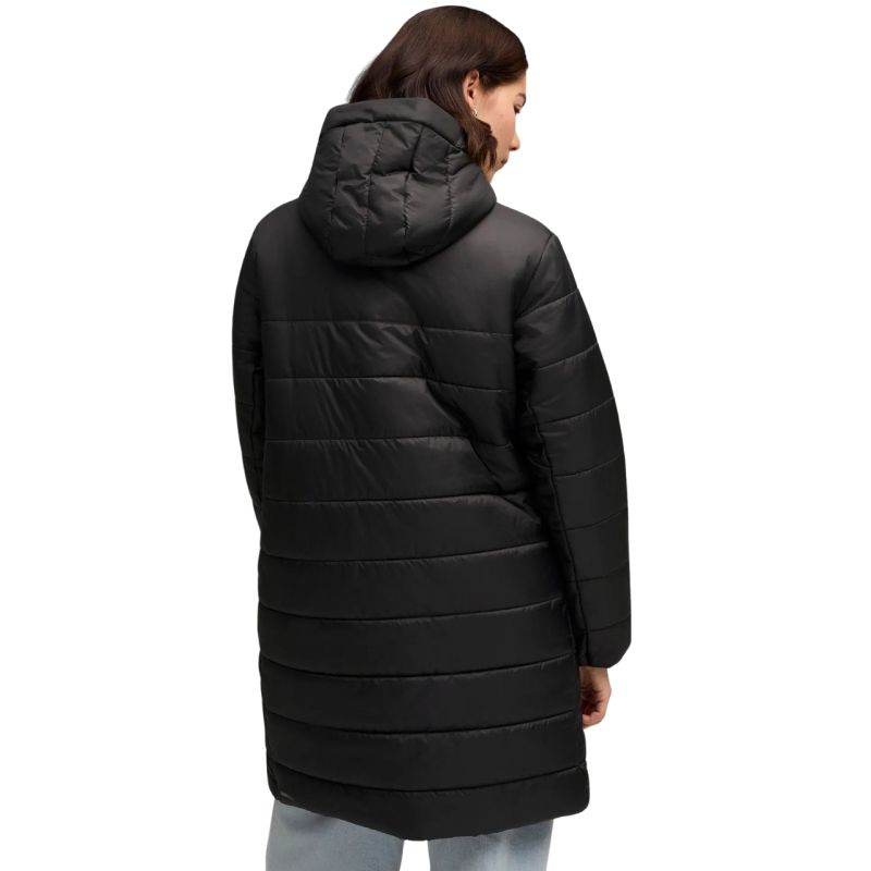 Puma ESS Hooded Padded Parka Women's Jacket Black 685232 01 This Puma women's jacket with a long cut is perfect for everyday wear. Quilted construction with synthetic fill. WarmCell technology provides thermal insulation. The jacket has a water-repellent impregnation, which, combined with RainCell technology, limits moisture absorption. Regular fit with a two-way zipper. Fixed hood without adjustment. WindCell technology. Two zipped side pockets. Specifications: · Outer material: 100% polyester · Lining: 100% polyester · Filling: 100% polyester · Jacket made from at least 90% recycled materials