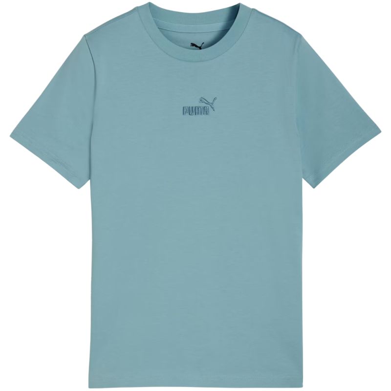 Puma ESS Small No. 1 Logo Centered Tee for Kids, Blue 692975 47. This Puma kids' tee is perfect for everyday wear. Made of soft cotton. Additional neck tape. Classic fit. Small, embroidered Puma logo. Main material: 100% cotton