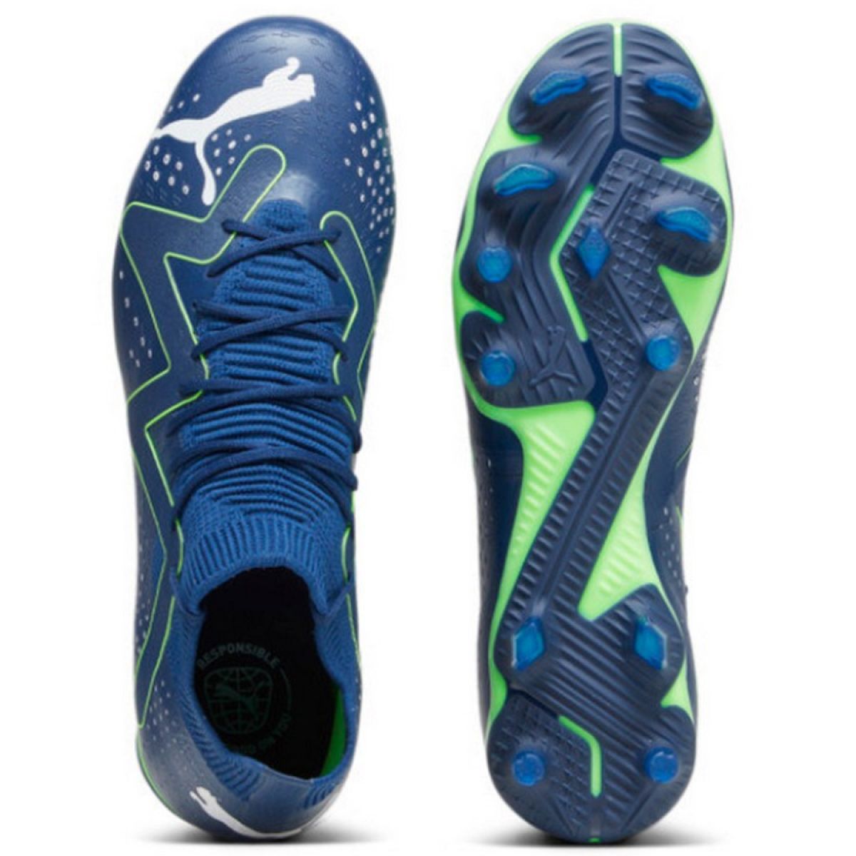 Puma Future Match FG/AG Navy Blue 107370 01 Men's Puma Football Boots are a stylish blend of innovative technologies and unparalleled comfort on the pitch. These men's Puma cleats feature a specialized outsole designed for semi-amateur play on natural grass and artificial surfaces. This model from the Breakthrough Pack collection showcases a unique design. The upper features a lightweight double mesh and stretchy knit upper. The synthetic overlay provides stability and allows for more dynamic movements on the pitch. The Dynamic Motion System outsole provides stability in the heel and flexibility in the forefoot.