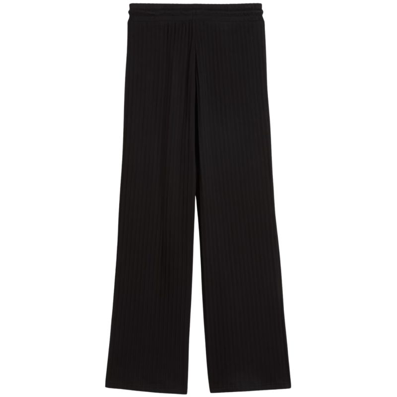 Puma HER Comfort High-Waist Wide Leg Women's Pants Black 693284 01 Puma women's pants are perfect for everyday wear. Wide legs. High waist. Made primarily of soft cotton. Ribbed material structure. Elastic waist. External drawstring for adjustment. At least 30% of materials are recycled. Side pockets. Main material: 58% cotton, 38% polyester, 4% elastomeric polyurethane