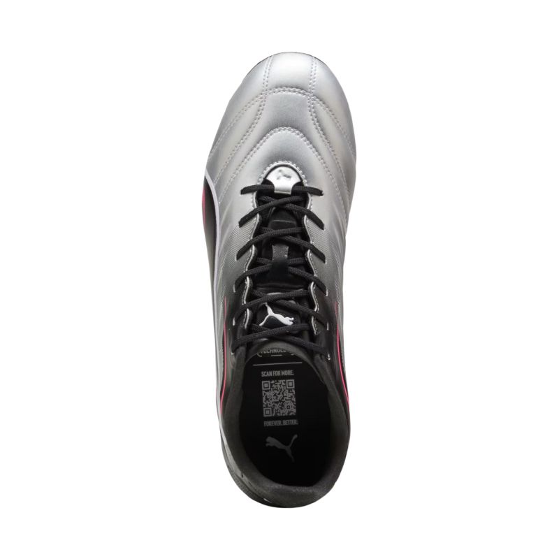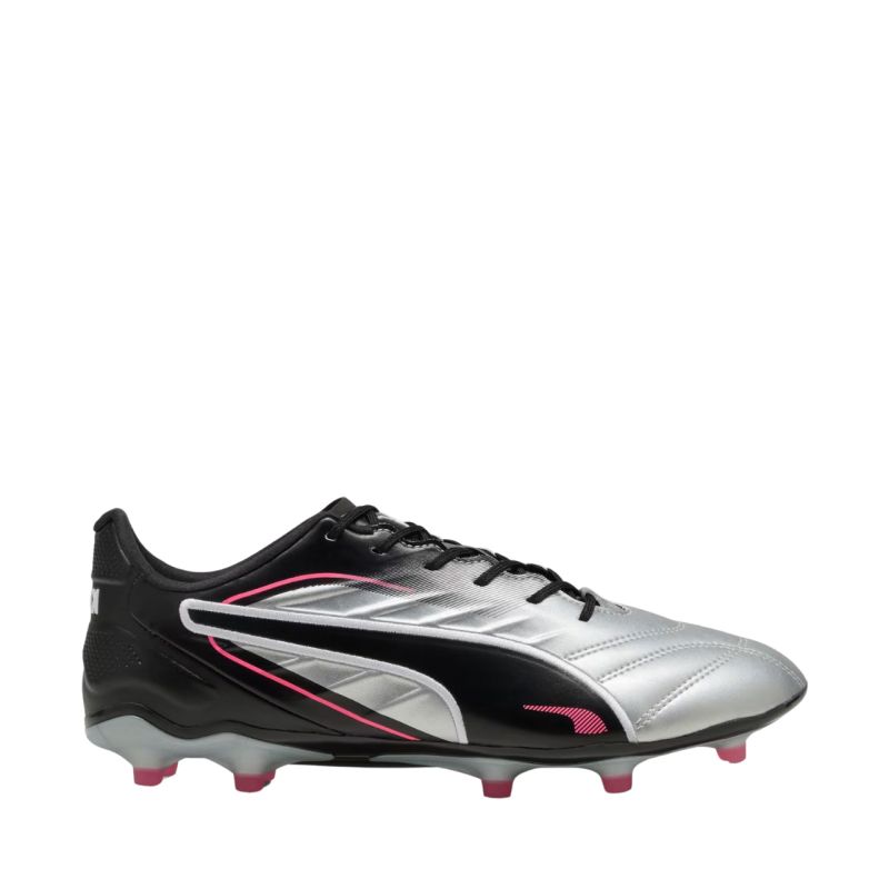 Puma King Pro FG/AG 108308 02 Football Boots. Men's Puma King football boots are designed for playing on natural, outdoor surfaces. Level: Semi-professional. Specifications: · K-BETTER™ upper made from a material not derived from animals provides improved feel, comfort, and durability for which the KING model is famous. · FG/AG: Outsole for playing on firm natural surfaces and artificial turf (4G) · Special upper structure for better ball contact and quicker reactions · Standard fit · Classic tongue construction ensures a comfortable fit for a variety of foot shapes · Lightweight TPU outsole with conical studs · Removable sockliner · The upper of this boot is made from at least 20% recycled materials