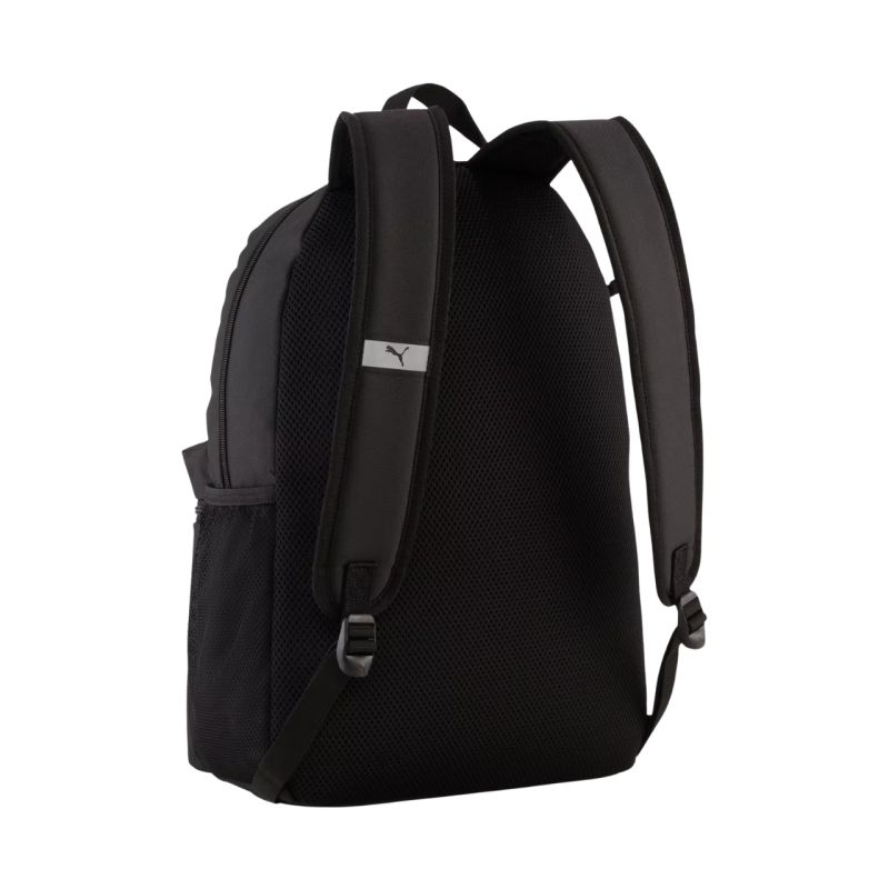 Puma Phase Backpack Black 92190 02 This single-compartment backpack from Puma is perfect for carrying essentials for school or a quick weekend trip. A two-way zipper provides quick and easy access to the main compartment. A large, zippered pocket on the front. Adjustable, padded shoulder straps with a reflector. Padded back panel. Braided carry handle. Mesh pocket on the side. A zippered pencil case is included. Specifications: Set includes: backpack + pencil case. Material: 100% polyester. Backpack dimensions: 43.5 x 13 x 14 cm. Backpack capacity: 20 l. Made from at least 90% recycled materials.