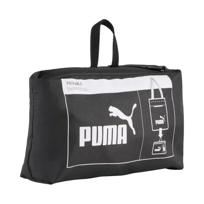 Puma Phase Packable Bag Black 92157 01. This Puma bag offers quick access to the small items you want to keep with you. It features a zippered main compartment that fits A4 format. It also features a zippered front pocket and two handles. When folded, the bag creates a small, zippered pouch with a handle. Specifications: Material: 100% polyester Dimensions when unfolded: 38 x 34 cm Dimensions when folded: 19 x 13 cm Capacity: 10 l Made from at least 90% recycled materials