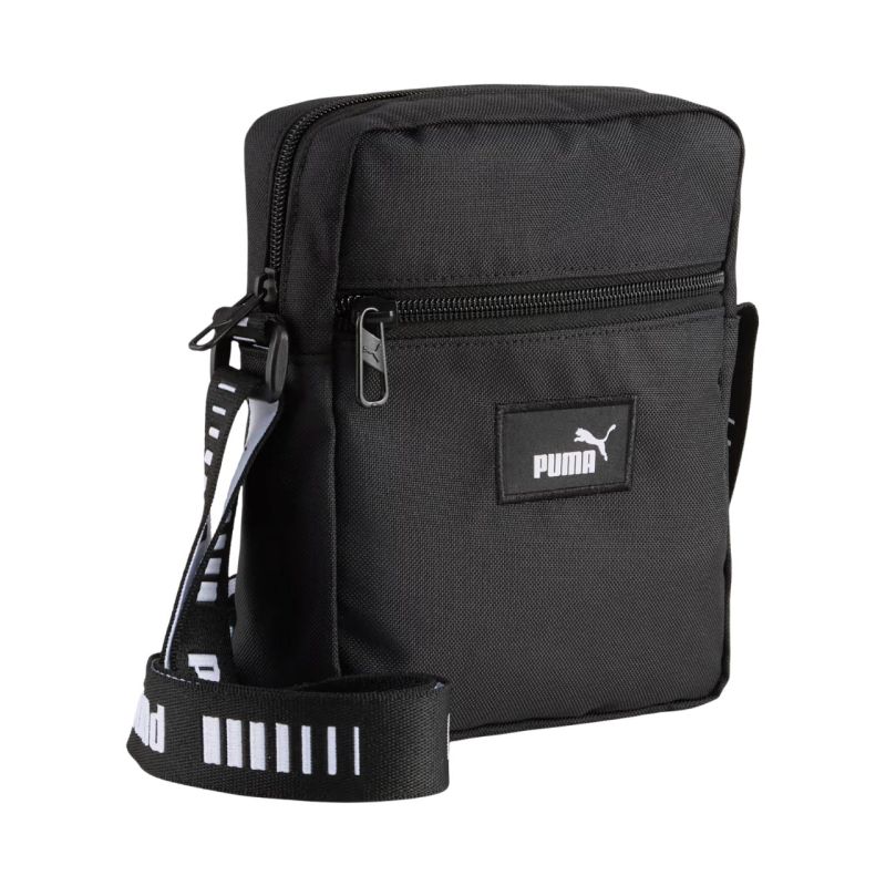 Puma Phase Tape Handbag Black 92201 01. This sporty Puma handbag is a practical accessory with a stylish twist. This compact shoulder bag is perfect for carrying small essentials you want to have with you while strolling or running everyday errands. It features a spacious, zippered main compartment. A zippered front pocket. A practical handle. A long, adjustable, braided strap. Specifications: Material: 100% polyester Dimensions: 22 x 15 x 3 cm Capacity: 2.5 l