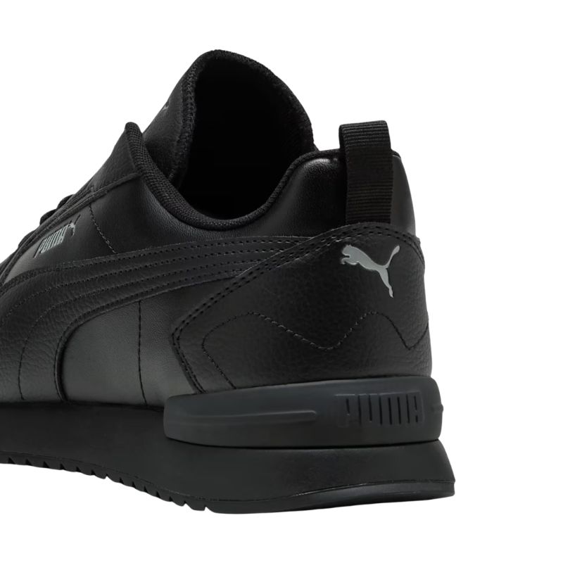Puma R78 Cyclone SL Men's Shoes Black 406163 01. These Puma sneakers combine '70s-inspired style with modern design, creating versatile everyday footwear. A genuine leather and synthetic panel upper ensures durability, while classic lacing ensures a secure fit. A SoftFoam+ sockliner provides plush cushioning thanks to an extra-thick heel, while an EVA midsole adds lightweight comfort. The rubber outsole provides traction, and a pull tab at the back makes it easy to put on.