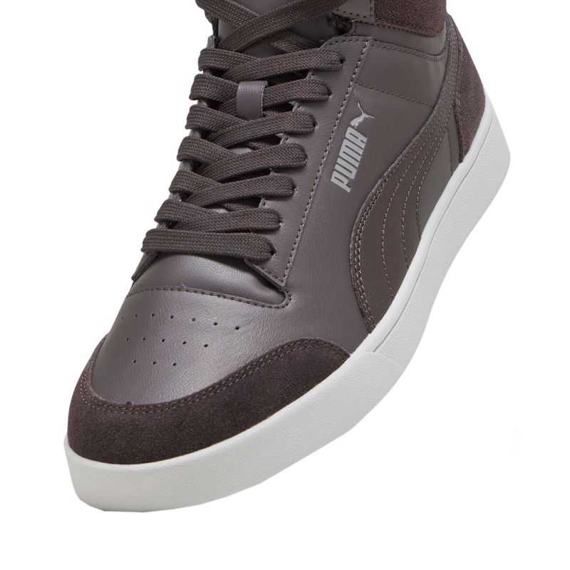 Puma Shuffle Mid Fur Flat Men's Shoes Gray 387609 03 These men's shoes by Puma are perfect for cooler days. They feature a synthetic leather upper. Raised construction. Perforations in the forefoot. Classic lacing. Soft, foam SoftFoam+ insole. Insulated interior. Rubber outsole with a herringbone tread.