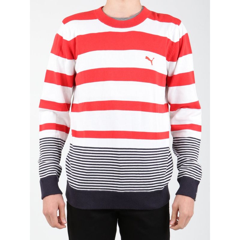 -Puma men's sweater -The model has a loose cut and a round neckline -Color: red and white stripes -Material: 100% cotton
