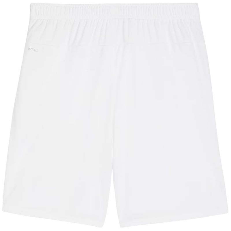 Puma Team Goal Men's Shorts White 705752 04. These Puma men's shorts are perfect for training. Regular fit. Part of the teamGOAL collection. Quick-drying fabric with DryCell technology wicks away excess moisture. Elastic waist. Mesh inserts on the sides. Small Puma logo. Material: 100% polyester