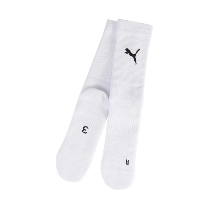 Puma Team Goal Performance Socks White 706119 04. These Puma socks are designed for those who demand support in key areas and uninterrupted comfort. They're constructed with a blend of durable and breathable fabrics. Reinforcements are located in the arch and heel areas. Strategically placed compression zones. Each pack contains one pair of socks. Material: 51% polyester, 40% cotton, 7% polyamide, 2% elastane.