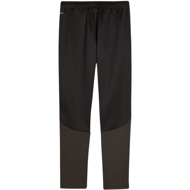 Puma Team Goal Training Pants for Kids, Black 658641 03. These Puma sweatpants are perfect for football training. They feature a slim fit, an elastic waistband with an internal drawcord for adjustability, and dryCell technology wicks away moisture. Zippered side pockets. Small logo detail. Zippered leg openings. Material: 100% recycled polyester.