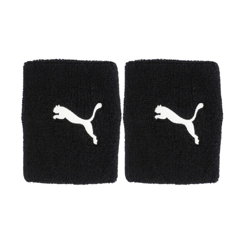 Puma Team Long Wristbands, 2 Pack, Black 51917 01. Puma Team Long Wristbands allow you to quickly wipe sweat from your forehead without reaching for a towel when you're upping the pace during physical activity. A special blend of soft materials absorbs excess moisture. The design conforms to your wrist. The set includes two wristbands, each completed with an embroidered logo. Specifications: Material: 80% cotton, 10% elastane, 10% polyamide Package contains: 2 pieces
