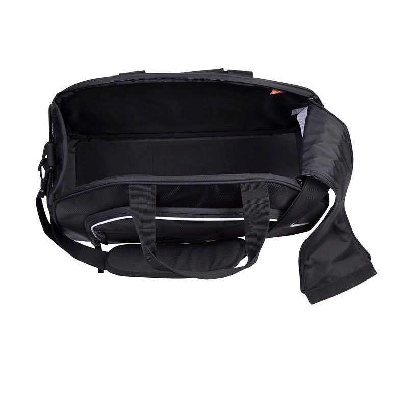 Made of durable nylon, the bag has a spacious main compartment with a large zipper opening for quick and easy access.