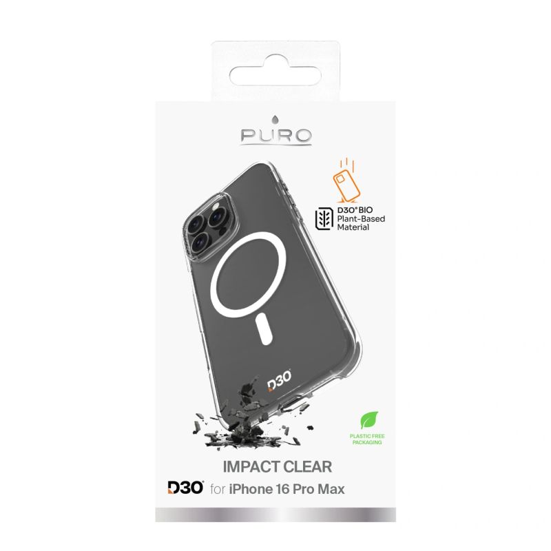 The Puro Impact Clear D3O MagSafe silicone case is the perfect solution for iPhone 16 Pro Max users looking for maximum protection for their device while maintaining a stylish look. Made using the innovative D3O® Bio material, which comes from plant-based raw materials, the case offers exceptional resistance to damage. Compatibility with MagSafe means you can easily use accessories without removing the case, which additionally increases the convenience of use. High-quality TPU and PC materials ensure durability, and special technology prevents the case from yellowing, so your iPhone always looks fresh and modern.