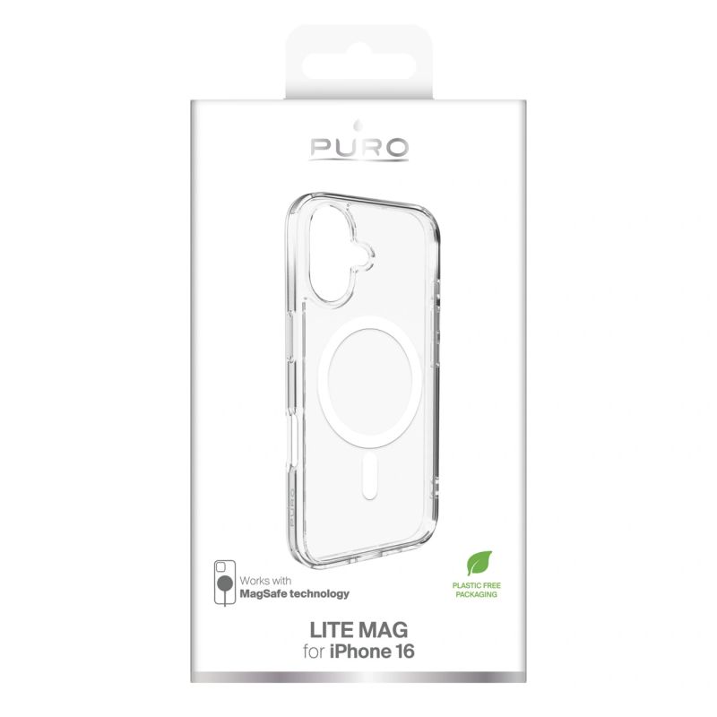 The Puro Lite Mag MagSafe case for iPhone 16 is designed to be fully compatible with MagSafe technology. This means you can easily use all MagSafe accessories, such as chargers, car mounts or wallets, without having to remove the case. The magnetic attachment is strong and stable, which ensures safe use every day.