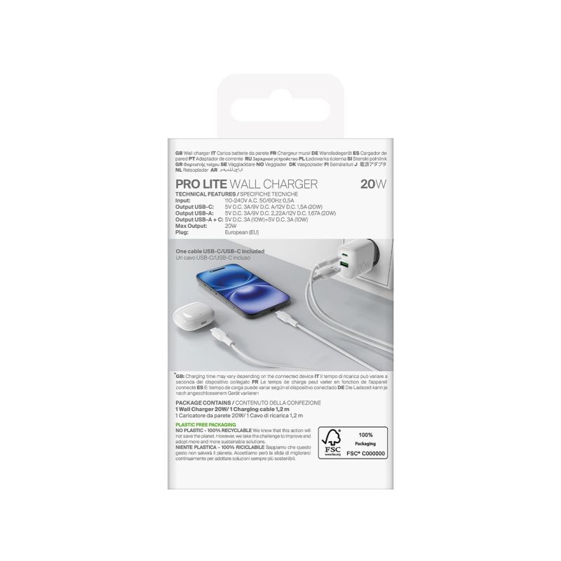 Puro PROLITE 20W USB-A / USB-C wall charger + USB-C - USB-C cable 1.2m - white