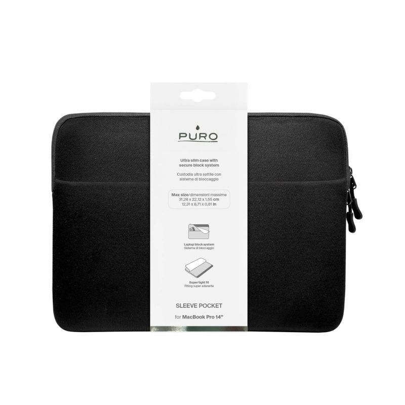 The Puro Slim Pocket bag was designed with everyday comfort and safe device transport in mind. Its slim design minimizes bulk, allowing it to easily fit in a backpack or bag. Durable material protects against scratches, and a double zipper allows for quick access to your gear. It's a practical solution for those who value organization and mobility.