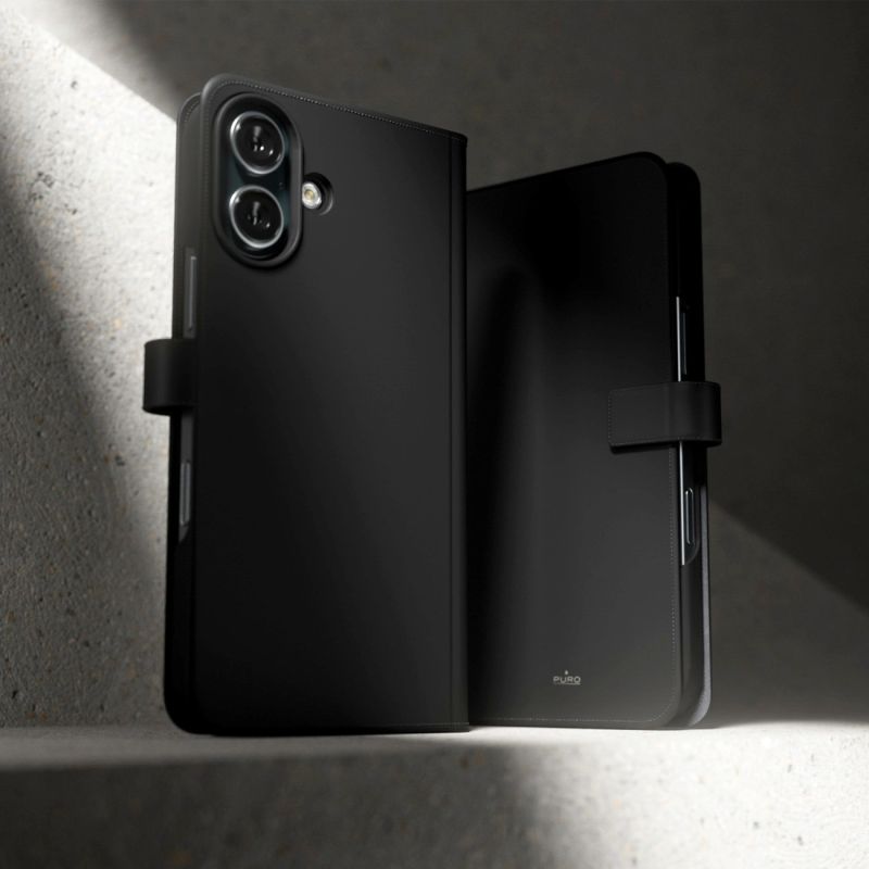 Discover a new level of protection and functionality with the Puro Wallet Detachable MagSafe 2in1 case with a flap and wallet for iPhone 16. This elegant case, made of high-quality eco-leather, offers not only a luxurious look, but also full protection for your device. Thanks to its compatibility with MagSafe, quick assembly and disassembly of the case has never been easier. The integrated wallet allows you to store cards and documents, providing everyday practicality, and the camera hole guarantees convenient access to the lens without having to open the flap. The perfect combination of style, protection and functionality - this case is an indispensable addition to every iPhone 16 user.