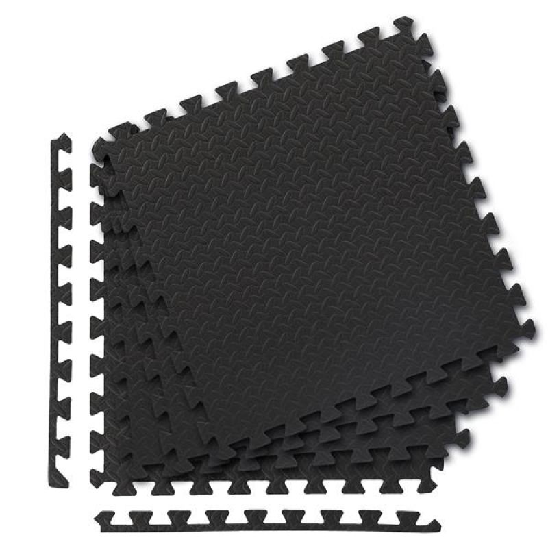 - The puzzle mat effectively protects floors from damage and additionally dampens sound during weight training.