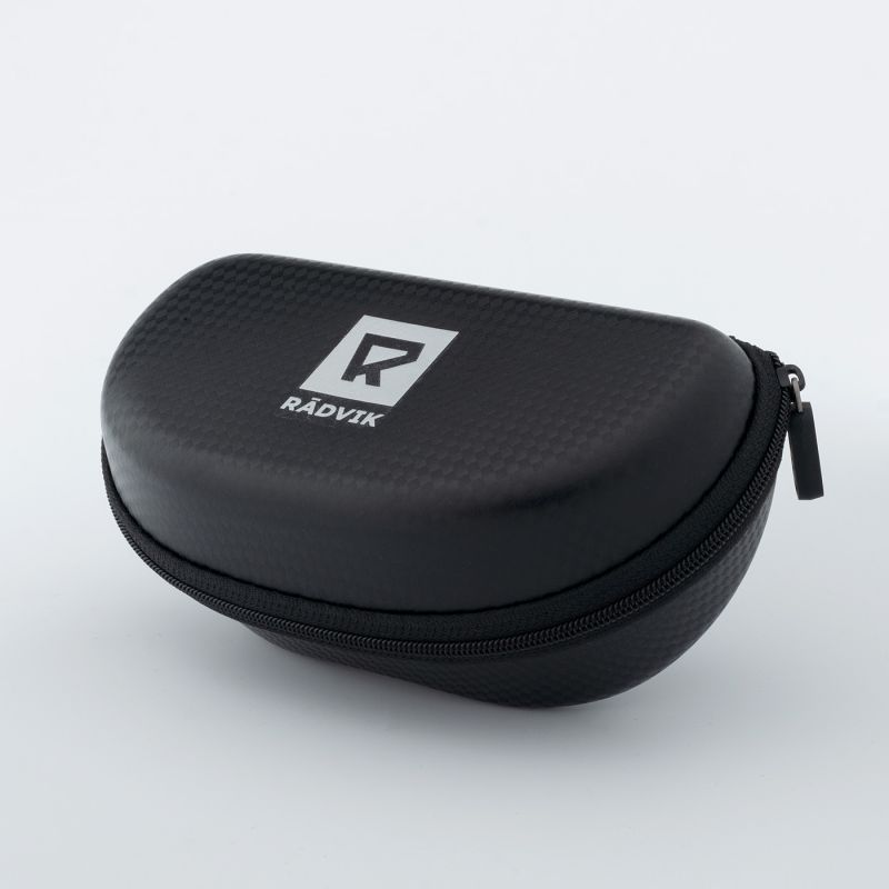 Radvik's GYTHA sunglasses feature flexible frames made of TR90 grilamid. The lenses have a UV400 filter, protecting the eyes from harmful radiation. Polycarbonate lenses are more resistant to damage and scratches. GYTHA sunglasses feature REVO rainbow coating lenses with a light transmission category of 3. The GYTHA sunglasses are polarized, eliminating glare and improving visual comfort. A hard case is included for storage and transport.