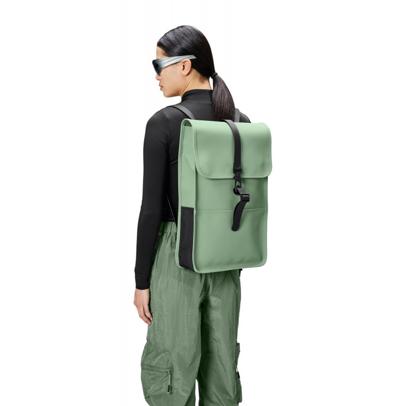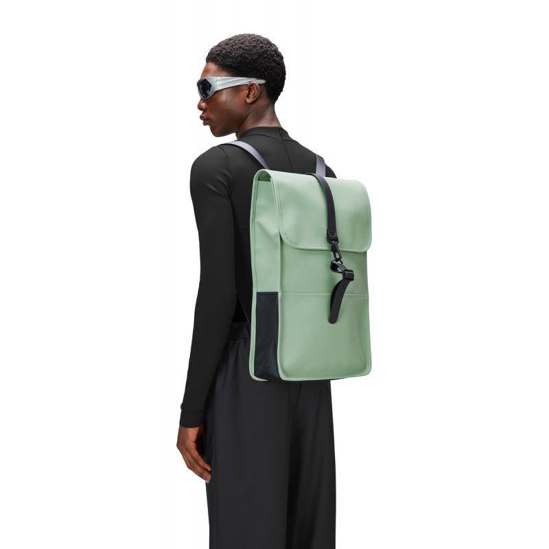 - The backpack is made of Rains' signature waterproof PU fabric, designed for strength, durability and a smooth feel.