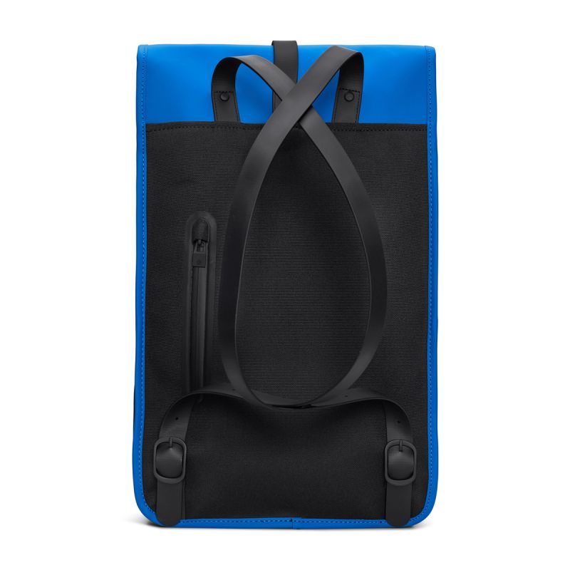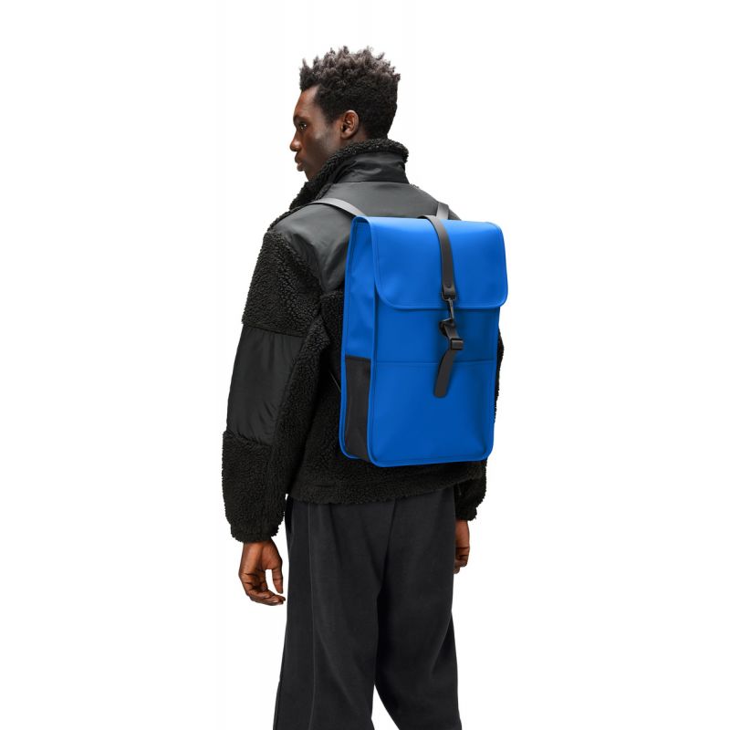 - The backpack is made of Rains' signature waterproof PU fabric, designed for strength, durability and a smooth feel.