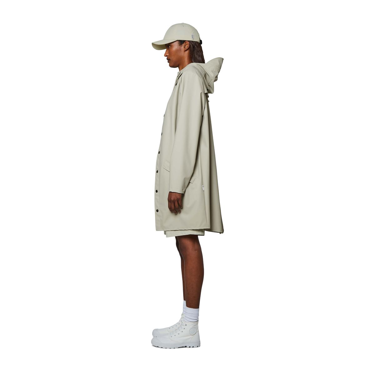 The Long Jacket is a longer version of the classic Rain Jacket design. This ever-contemporary unisex rain jacket offers high functionality in a minimalist silhouette. Features include double-welded diagonal flap pockets, adjustable cuffs, and a fishtail hem. Snap fastenings, underarm loops, and a back yoke with hidden vents complete the look. This waterproof jacket is crafted from Rains' signature PU fabric and features ultrasonically welded seams. The finish is lightweight, soft to the touch, and drapes elegantly.