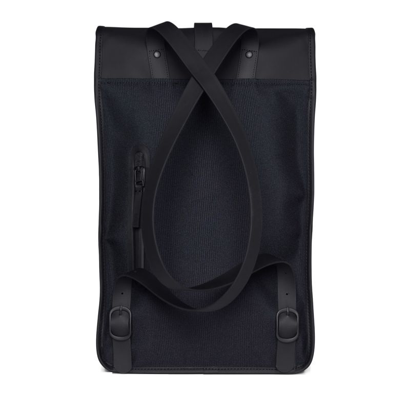 - The backpack is cut from Rains waterproof PU material, designed for strength, durability and a smooth feel.