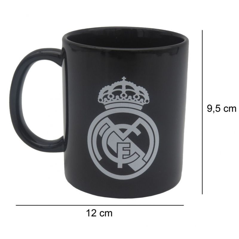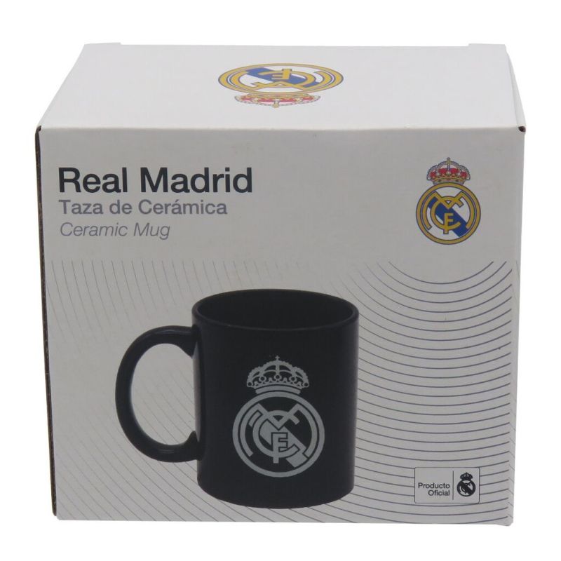 REAL MADRID MUG Model: BLACK CERAMIC MUG IN GIFT BOX 325ML Catalog Number: MG92-08RM Official, licensed product of REAL MADRID football club. A mug for a true fan, intended for everyday use. With it, you can express your love for your favorite football team. Perfectly matched colors emphasize its unique design, which makes the mug both functional and decorative. It is decorated with the club's signature colors and graphics. Perfect for both home and work. It also makes a great gift. This mug is carefully crafted with attention to detail. The presented product includes a complete set of manufacturer's tags and original packaging. Capacity: 325 ml