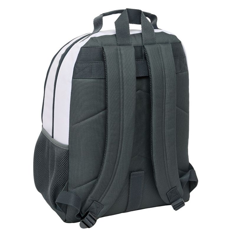 REAL MADRID BACKPACK Model: DOUBLE BACKPACK Catalog number: 612554560 Official, licensed product of REAL MADRID football club. A backpack for the true fan. Highly functional, perfect for various occasions: school, kindergarten, travel, swimming pool, training, etc. This backpack allows you to express your support for your favorite football team and conveniently carry essential items. Perfectly matched colors emphasize its unique design. This backpack is made with great care and attention to detail. This product includes a full set of manufacturer's tags and original packaging. Material: 100% polyester Dimensions: 42 x 32 x 16 cm Capacity: 21 L