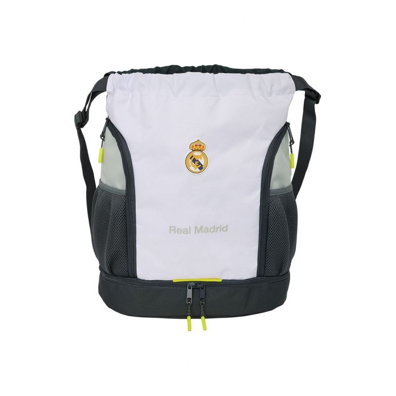 REAL MADRID BACKPACK Model: GYM BACKPACK Catalog number: 612554197 Official, licensed product of REAL MADRID football club. A backpack for the true fan. Highly functional, perfect for various occasions: school, kindergarten, travel, swimming pool, training, etc. This backpack allows you to express your support for your favorite football team and conveniently carry essential items. Perfectly matched colors emphasize its unique design. This backpack is made with great care and attention to detail. This product includes a full set of manufacturer's tags and original packaging. Material: 100% polyester Dimensions: 43 x 34 x 15 cm Capacity: 21.9 L