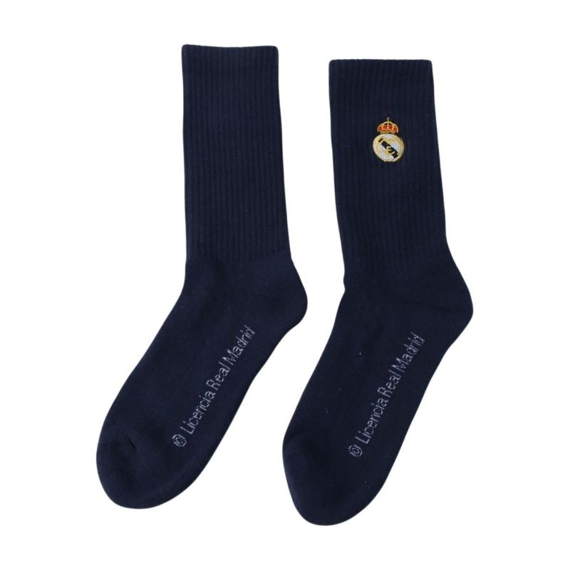 REAL MADRID SOCKS 2 PACK Model: 2 PACK LONG SOCKS Catalog Number: 2900003434 Official, licensed product of Real Madrid Football Club. These socks allow you to express your support for your favorite team. Perfectly matched colors highlight their unique design. Our socks are made with great care and attention to detail. This product comes with a full set of manufacturer's tags and original packaging. Material: 75% cotton, 23% nylon, 2% elastane