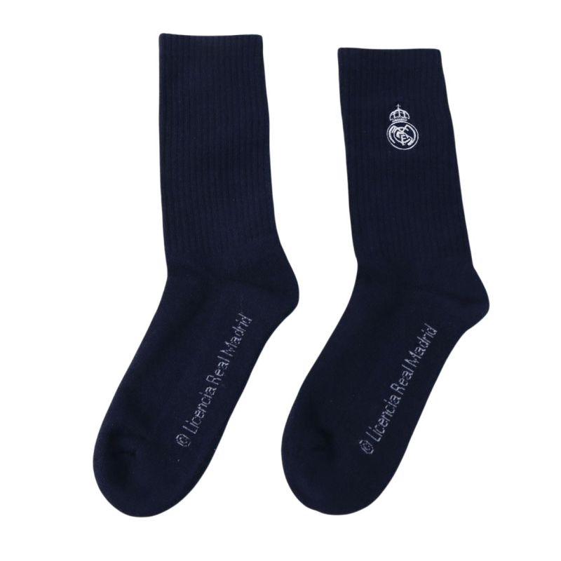 REAL MADRID SOCKS 3 PACK Model: 3 PACK LONG SOCKS Catalog Number: 2900003437 Official, licensed product of Real Madrid Football Club. These socks allow you to express your support for your favorite team. Perfectly matched colors highlight their unique design. Our socks are made with great care and attention to detail. This product comes with a full set of manufacturer's tags and original packaging. Material: 75% cotton, 23% nylon, 2% elastane