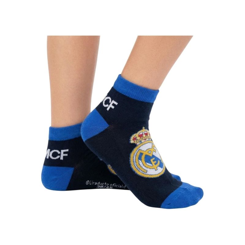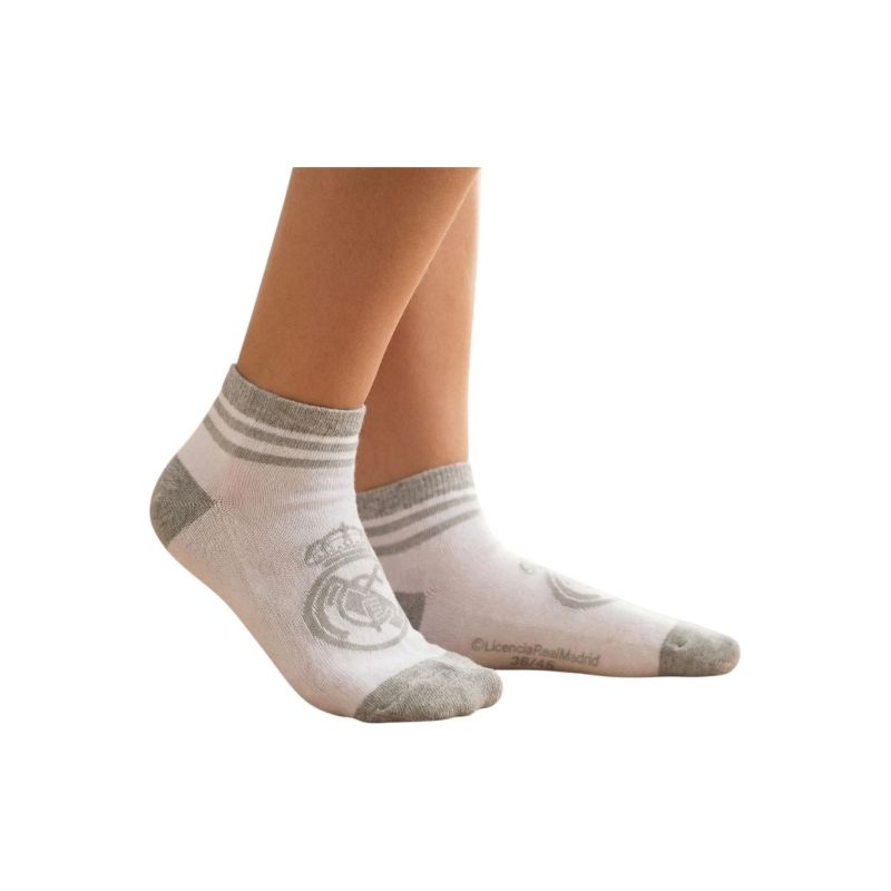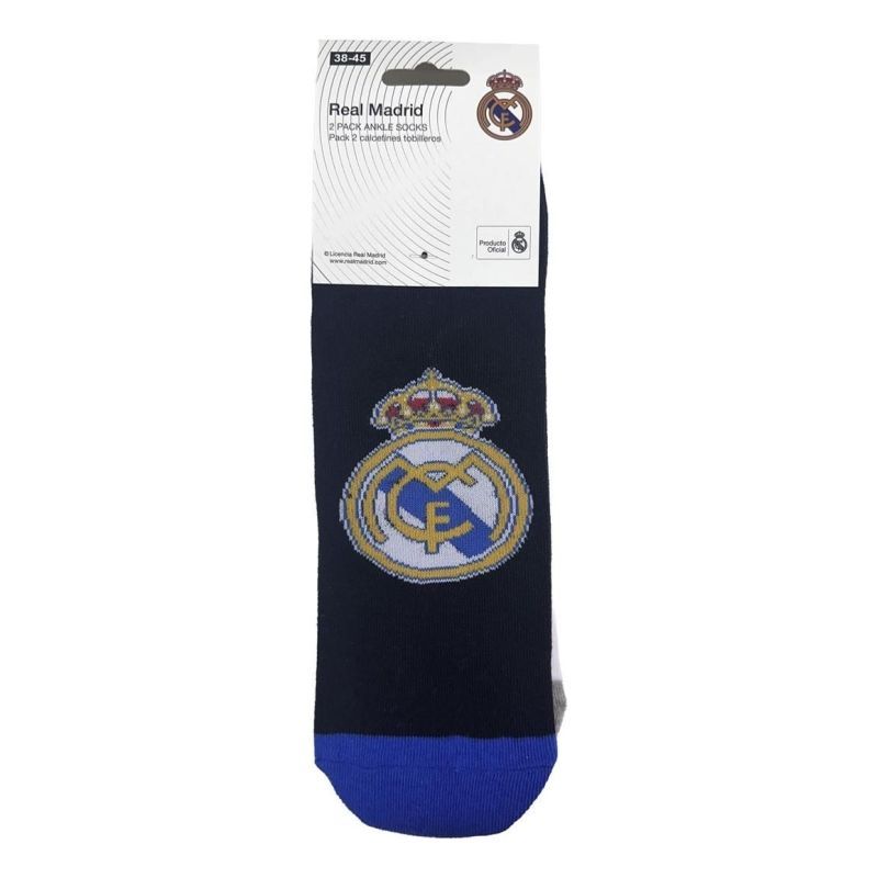 REAL MADRID SOCKS 2 PACK Model: 2 PACK ANKLE SOCKS Catalog Number: 2900003293 Official, licensed product of Real Madrid Football Club. These socks let you show your support for your favorite team. Perfectly matched colors highlight their unique design. Our socks are made with great care and attention to detail. This product comes with a full set of manufacturer's tags and original packaging. Material: 65% cotton, 33% polyester, 2% elastane