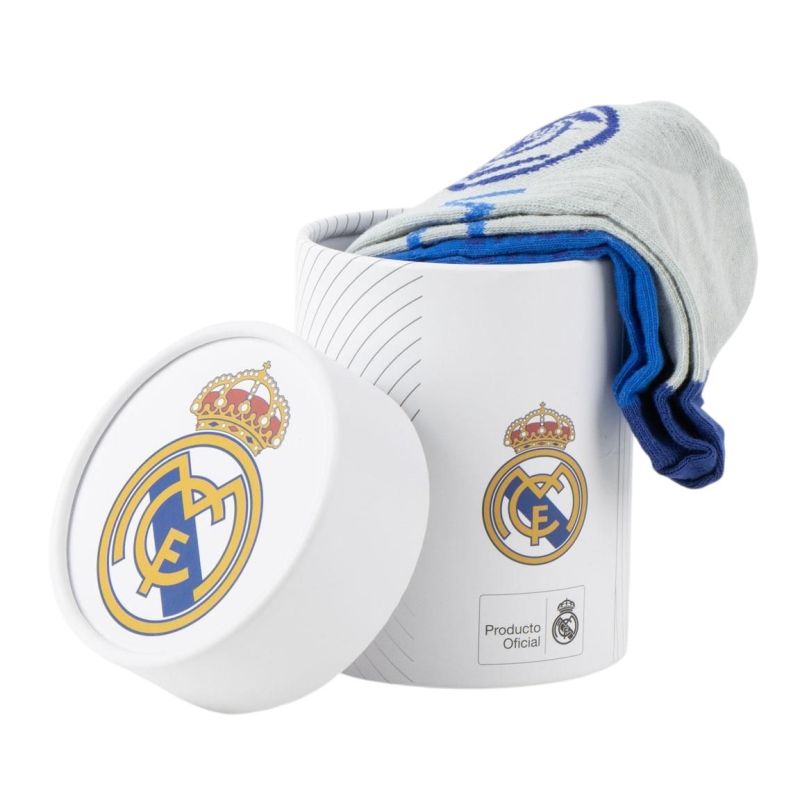REAL MADRID SOCKS 3 PACK Model: SOCKS 3 PAIRS GIFT BOX Catalog Number: 2900003004 Official, licensed product of Real Madrid Football Club. These socks are a perfect way to show your support for your favorite team. Packaged in a gift box, they're perfect for a gift. Perfectly matched colors highlight their unique design. Our socks are made with meticulous attention to detail. This product comes with all manufacturer's tags and original packaging. Material: 53% cotton, 30% polyester, 16% nylon, 1% elastane