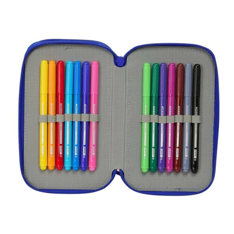 REAL MADRID PENCIL CASE Model: TRIPLE FILLED PENCIL CASE 37 PCS Catalog Number: 412624857 Official, licensed product of REAL MADRID Football Club. A pencil case for the true fan. It allows you to express your support for your favorite football team. Perfectly matched colors emphasize its unique design. This pencil case is carefully crafted with attention to detail. This product includes a full set of manufacturer's tags and original packaging. Pencil case dimensions: width: 19.5 cm height: 12.5 cm depth: 5.5 cm