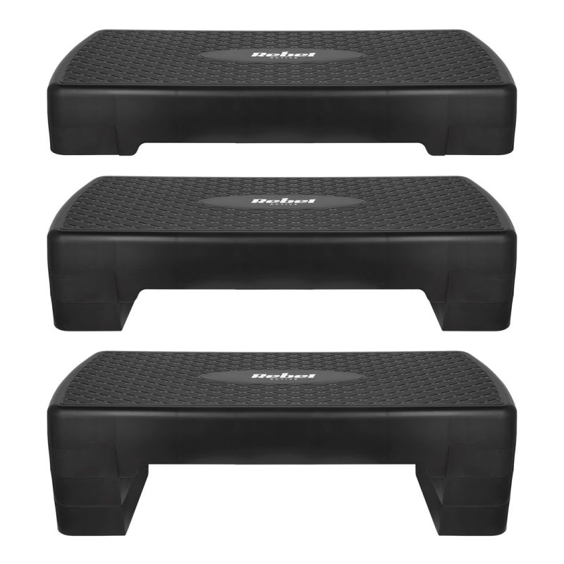 Rebel Active Step for Aerobics and Fitness, 3 Steps, 68 cm, Black RBA-3227-BK