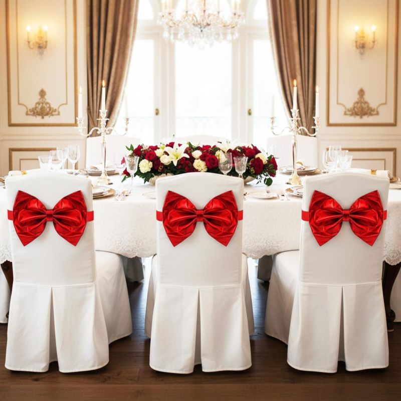 Add a touch of glamour and elegance to your chairs! The RED CHAIR BOW 50X32CM will add a unique touch to any celebration.