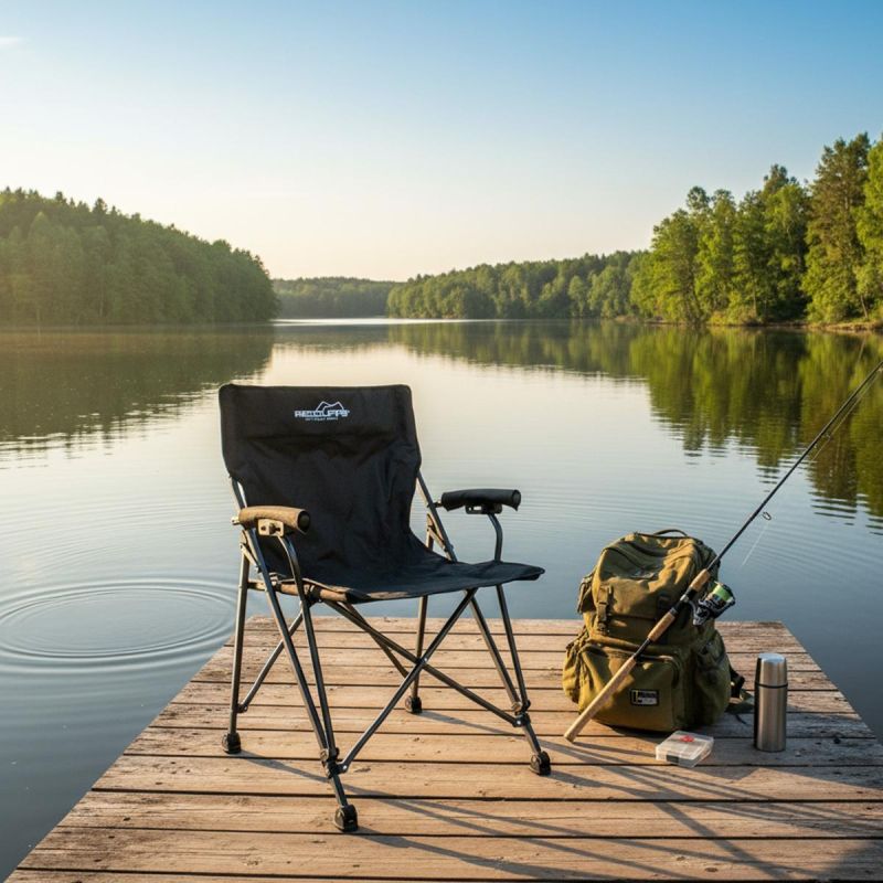 The 61x58x89 cm DELUXE REDCLIFFS Folding Camping Chair is the answer to the needs of every outdoor enthusiast. Its stable steel construction, wide seat, and armrests with a drink holder make relaxing outdoors even more enjoyable. Its foldable design and compact dimensions allow for easy transport and storage – whether you're going camping, fishing, picnicking, or attending a festival.