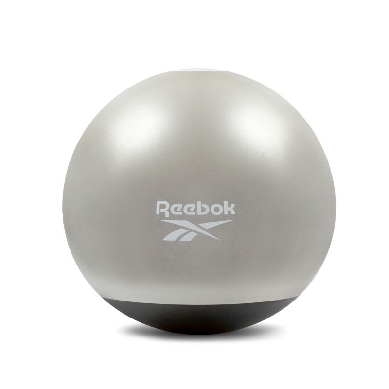 - The 55 cm Reebok exercise ball is suitable for individuals 155-167 cm tall. It's made of a non-slip material that enhances grip during training. Anti-burst technology allows the ball to deflate slowly if punctured, reducing the risk of injury. The ball has a slightly weighted base to prevent it from rolling away during training.