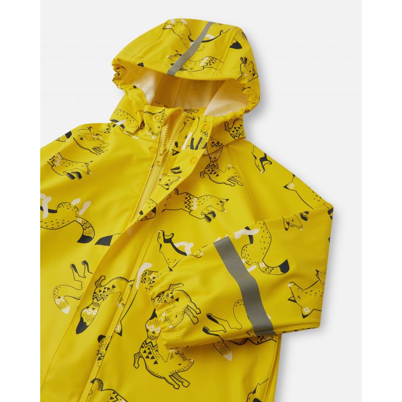 - But it's not just a matter of style. The Reima kids' outdoor hooded jacket offers excellent protection against harsh weather conditions. It's windproof , water-repellent , and the welded seams ensure moisture doesn't get in. The full-length zipper makes it easy to put on and take off, which is especially important for younger children. Furthermore, the detachable hood protects the head from precipitation and chilly winds, while reflective elements and an all-over print increase your child's visibility, which is crucial especially at night. This Reima jacket will protect your child from the elements during all outdoor activities, while also showing off style and environmental friendliness.