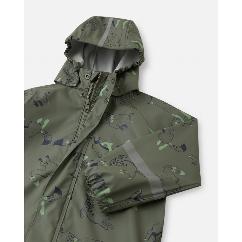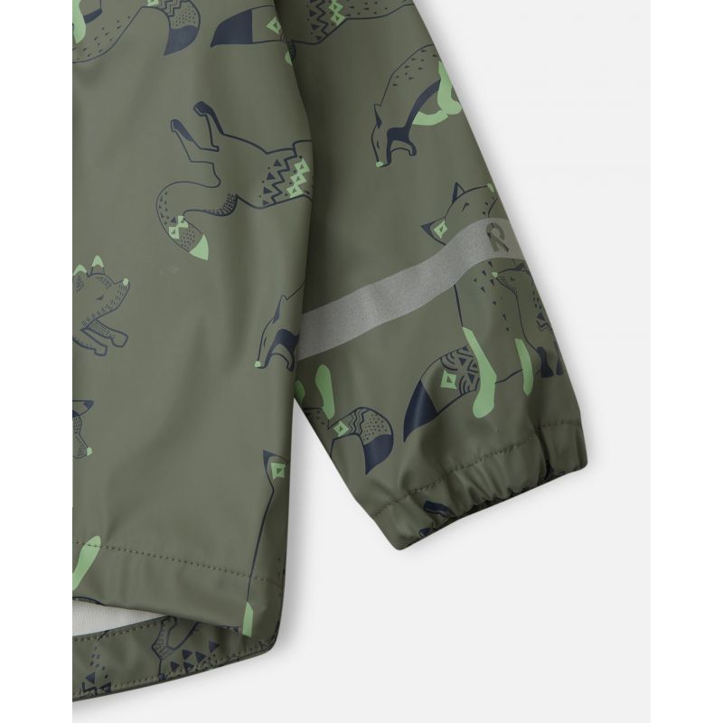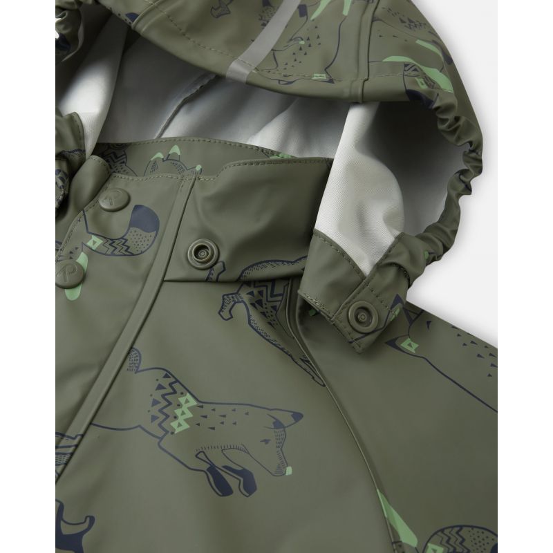 - But it's not just a matter of style. The Reima kids' outdoor hooded jacket offers excellent protection against harsh weather conditions. It's windproof , water-repellent , and the welded seams ensure moisture doesn't get in. The full-length zipper makes it easy to put on and take off, which is especially important for younger children. Furthermore, the detachable hood protects the head from precipitation and chilly winds, while reflective elements and an all-over print increase your child's visibility, which is crucial especially at night. This Reima jacket will protect your child from the elements during all outdoor activities, while also showing off style and environmental friendliness.