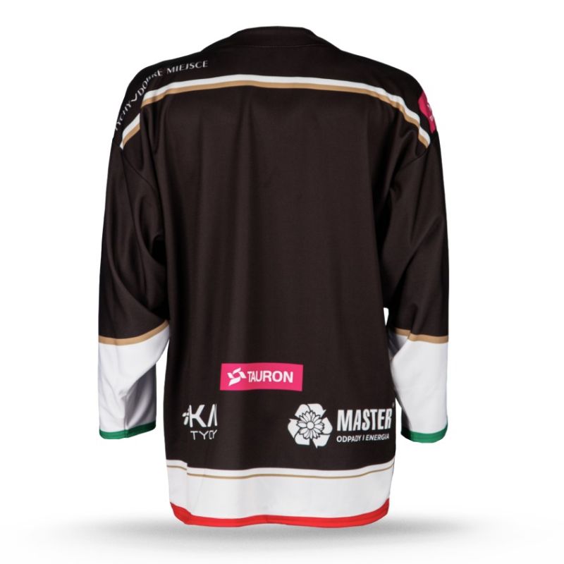 GKS Tychy 25/26 Matchday Jersey Replica The GKS Tychy 25/26 Matchday Jersey Replica is a must-have for any fan who wants to feel like a true GKS Tychy player on the ice. Key Features: Unique Design: Black and white jersey with a large GKS Tychy crest on the front, adorned with the club's colors – green, black, red, and gold accents. Additional sponsor logos give it an authentic, matchday feel. High-Quality Material: Made of lightweight, breathable, and durable material, it ensures comfort while wearing and cheering. Official 25/26 Season Replica: The jersey reflects the players' original kit, allowing every fan to experience the atmosphere of a real match. The GKS Tychy 25/26 Matchday Jersey Replica is the perfect choice for loyal fans – both in the stands and on a daily basis. If you want to make your jersey even more unique, you can personalize it by adding your name, surname, and player number. This service is available for an additional fee of 50 PLN. Simply add the "Clothing Customization A3" product to your cart and enter the text and number in the order notes. The sweatshirt is available in Junior and Senior sizes, so every fan can find the perfect fit. Let your GKS Tychy 25/26 sweatshirt become the hallmark of a true fan! Because a personalized sweatshirt is an additional service, it's custom-made for the customer. This sweatshirt is non-returnable! Please consider your design carefully before placing your sublimation order.