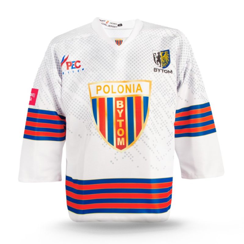 Polonia Bytom 25/26 Game Jersey Replica: Modern design, tradition, and passion on the ice! This official replica of the Polonia Bytom 2025/2026 game jersey is a unique proposition for all GKS Tychy fans. It combines the professional look of team gear with the comfort of everyday wear—perfect for both the stands and the ice. Key features: Official 25/26 season replica: Featuring the same design as the Polonia Bytom players' jerseys, inspired by modern hockey style with elements of club tradition. Dynamic design: Featuring a striking design of gray polka dots and classic red, blue, and yellow stripes, this jersey exudes energy and character. Polonia Bytom crest: A large, centrally placed club logo highlights pride and affiliation with one of Poland's most distinguished hockey teams. High-quality workmanship: The sweatshirt is made of breathable and durable 100% polyester, UV-resistant, ensuring comfort both during cheering and sports activities. Details worthy of champions: Sponsor logos and the Bytom city coat of arms are emblazoned on the shoulders and chest, adding an authentic and professional touch. Personalization: Player name, surname, and number can be added, making the sweatshirt even more unique. Personalization cost: PLN 50 (add the "Clothing Customization A3" product to your cart and provide your details in the order notes). This Polonia Bytom 25/26 replica game sweatshirt is a must-have for every ice hockey fan. Wear it with pride – show your support for a club with a rich history and great ambitions!